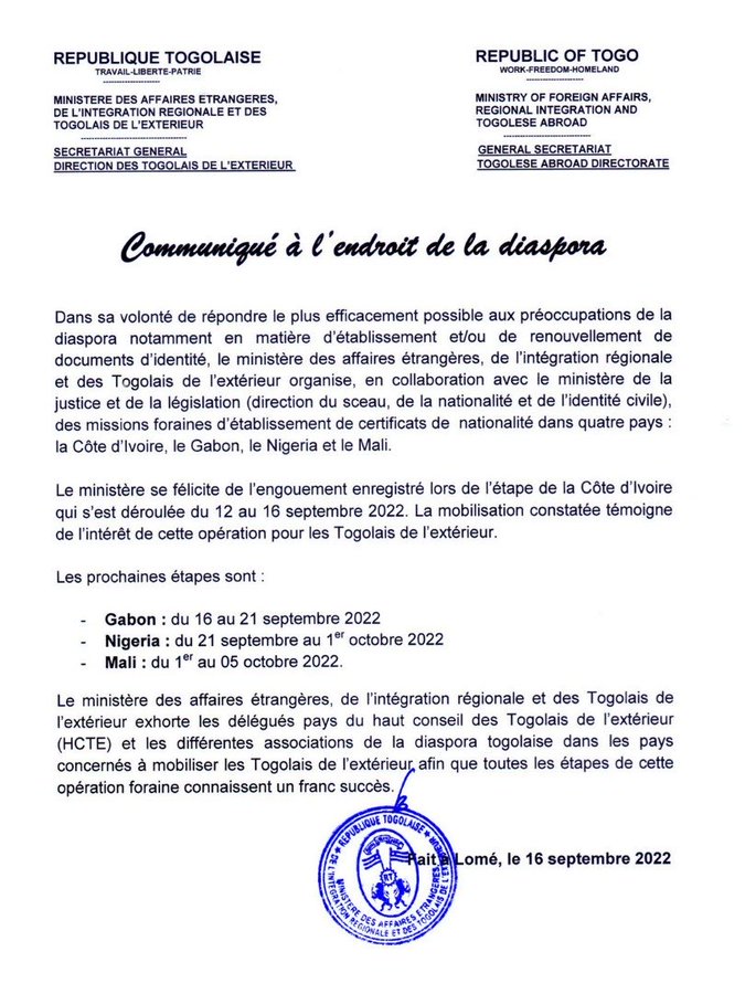 Cette série d’opérations vont concerner les pays abritant une forte communauté togolaise, notamment la Côte d’Ivoire, le Gabon, le Nigeria et le Mali.