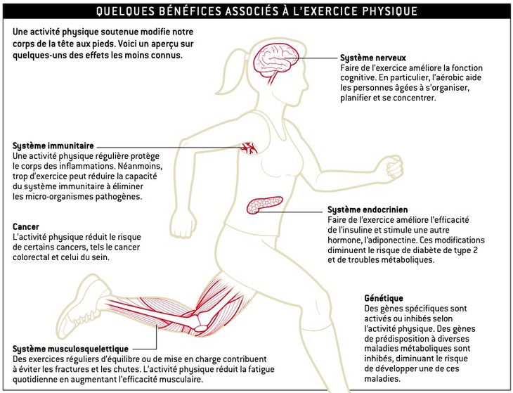 L’Organisation mondiale de la santé (OMS) définit l’activité physique comme tout mouvement corporel produit par les muscles squelettiques qui requiert une dépense d’énergie. Une activité physique régulière est essentielle pour prévenir et mieux prendre en charge les maladies cardiaques, le diabète et le cancer, ainsi que pour réduire les symptômes de dépression et d’anxiété, atténuer le déclin cognitif, améliorer la mémoire et stimuler la santé du cerveau.