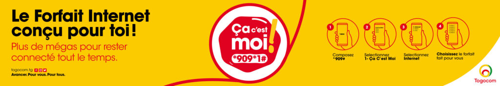 »Ça c’est moi ! », est une offre qui tient compte « des habitudes de consommation de chaque client » TOGOCOM en matière de connexion internet en catalogue. « Avec ces nouveaux forfaits, TOGOCOM offre, à chaque Togolais, les meilleurs offres internet à des prix adaptés ».