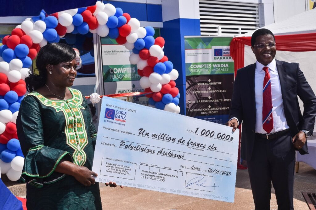 Notons que cette cérémonie d’inauguration a été couplée d’une action RSE en lien avec le concept Coris Days, à l’endroit de la polyclinique d’Atakpamé sous la houlette de la Direction préfectorale de la Santé de l’Ogou. Il s’est agi, en effet, d’apporter une contribution financière pour le renforcement la ligne médicaments du centre de santé et d’une dotation de comptes épargnes au bénéfice des mères en suite de couche et de leurs nouveau-nés. Cette action visant à renforcer l’inclusion financière et l’amélioration du taux de bancarisation des femmes et des enfants, consolide la précédente action menée au Centre Médico-Social de Démakpoè à Lomé.