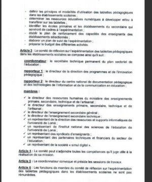 Dans les faits, il s’agit pour les membres de ce Comité, de définir les modalités d’utilisation des tablettes pédagogiques, les cours à développer ou à transférer sur ces outils et les établissements pilotes de ce projet.