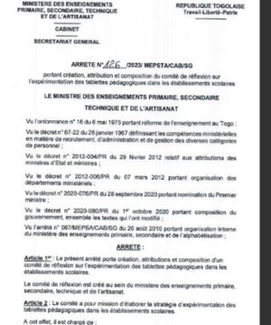 Dans un arrêté pris, hier mercredi 08 mars, le ministre des Enseignements primaire, secondaire, technique et de l’artisanat, Prof Dodzi K. Kokoroko, envisage d’introduire l’utilisation des tablettes pédagogiques en milieu scolaire.