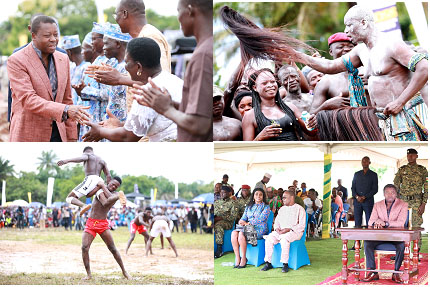 Rappelons que ces cérémonies initiatiques dont le bouquet final, les luttes, sanctionnent le passage de l’adolescence à l’âge adulte. Signe de l’affirmation de l’identité culturelle et la promotion du vivre ensemble, ces luttes Evala sont des périodes d’efforts physiques soutenus, de privations pour les jeunes lutteurs, mais des moments de partages et de réjouissances pour leurs familles et toute la communauté.