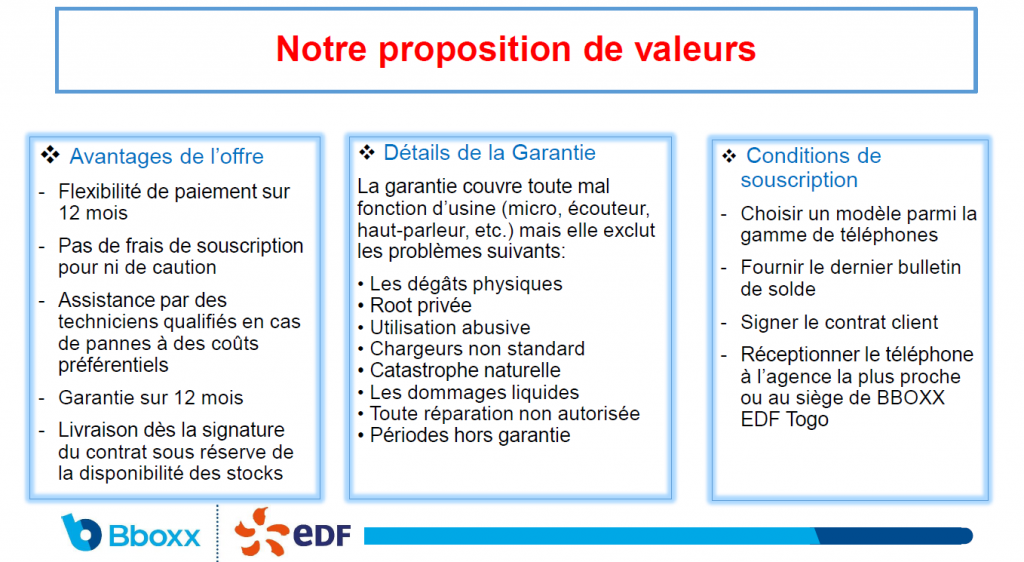 Pour toutes informations complémentaires, je vous invite à prendre attache avec le Directeur Commercial, M. Michel Kparou, au numéro 90 04 99 82 et par courriel àm.kparou@bboxx.co.uk