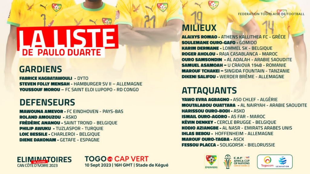 Découvrez la liste du Togo face au Cap-Vert