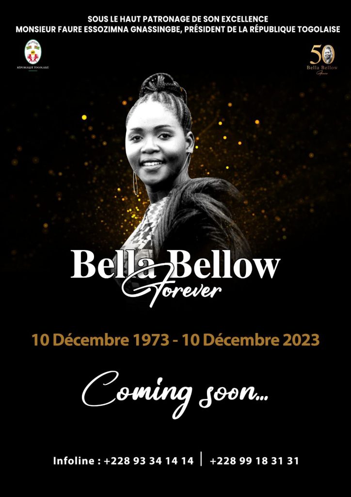 En décembre 2023, à l’occasion du cinquantenaire de la disparition de l’icône africaine Bella Bellow la nation togolaise lui rendra un hommage à la hauteur de ce qu’elle continue d’incarner pour l’univers de la musique et au regard du patrimoine qu’elle constitue pour l’éternité. C’est du moins le vœu ardent que nourrit la Fondation Bella Bellow Forever du titanesque programme qui compte élever au rang d’immortel La Voix, celle dont le rayonnement ne s’arrête jamais. Célébrons donc Bella Bellow, célébrons notre patrimoine culturel.