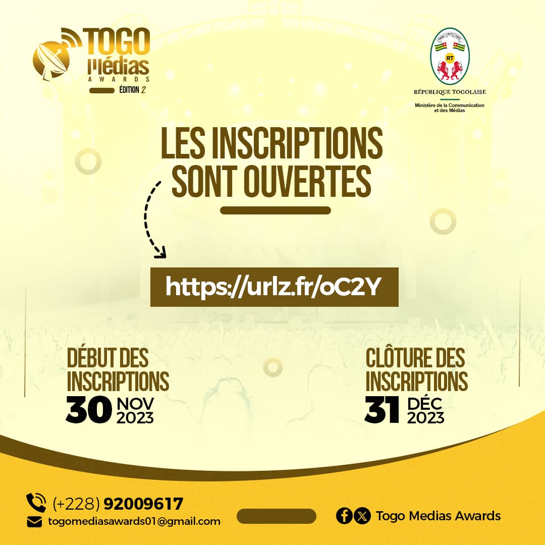 La deuxième édition tant attendue de Togo Médias Awards est officiellement lancée, marquant une célébration de l’excellence dans le domaine des médias au Togo. Les inscriptions débuteront le 30 novembre 2023 et se clôtureront le 31 décembre 2023 à 23h59 dans 18 catégories à savoir :