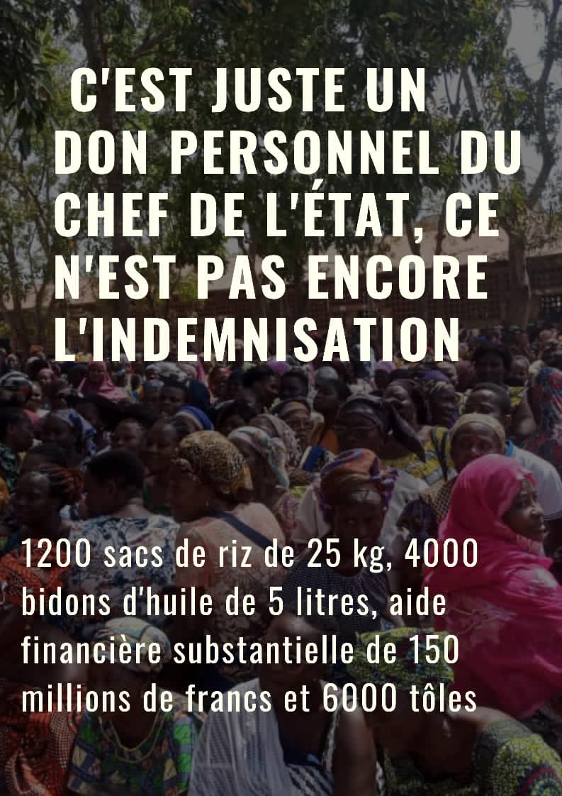 Une distribution séance tenante des kits de vivres alimentaires accompagnés d’une enveloppe financière de 25.000 francs Cfa pour chacune des victimes sur les lieux, a mis fin à la manifestation.
