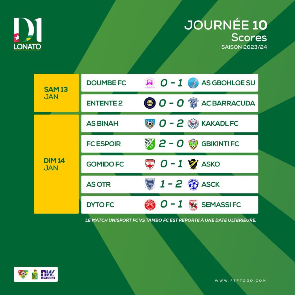 Le match Unisport et Tambo FC est reporté pour indisponibilité du stade de Sokodé.