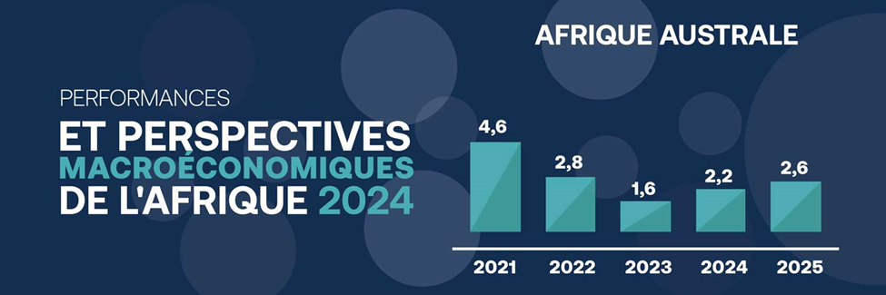 • Afrique australe – La croissance restera faible, en progression de 2,2 % en 2024 et 2,6 % en 2025. Cela reflète la faiblesse économique persistante de l’Afrique du Sud, la plus grande économie de la région.