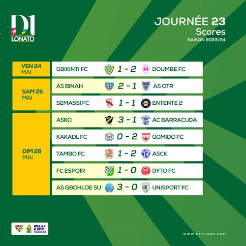 À sept journées de la fin de l’exercice 2023-2024, les choses se dessinent dans le championat national de football de première division au Togo. Le week-end écoulé, les clubs ont disputé la 23e journée avec beaucoup d’enseignements.