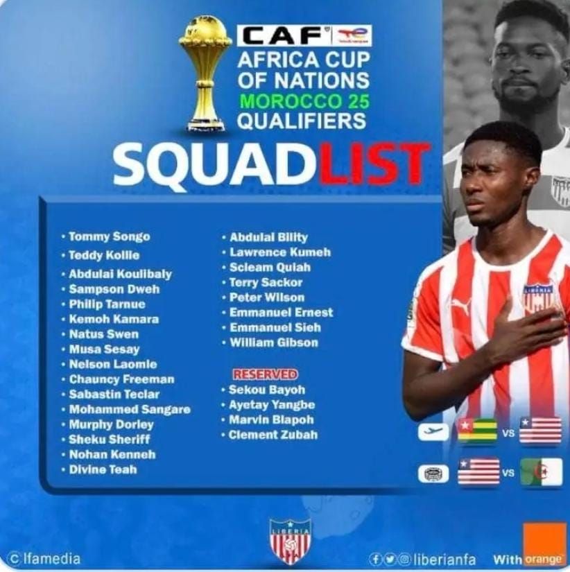 Ils sont au nombre de 24 sur la liste des joueurs retenus par Mario Marica, sélectionneur du Libéria, pour les matchs face au Togo à l’extérieur, et l’Algérie à domicile, comptant pour les deux premières journées des éliminatoires de la Coupe d’Afrique des Nations (Can) Maroc 2025.