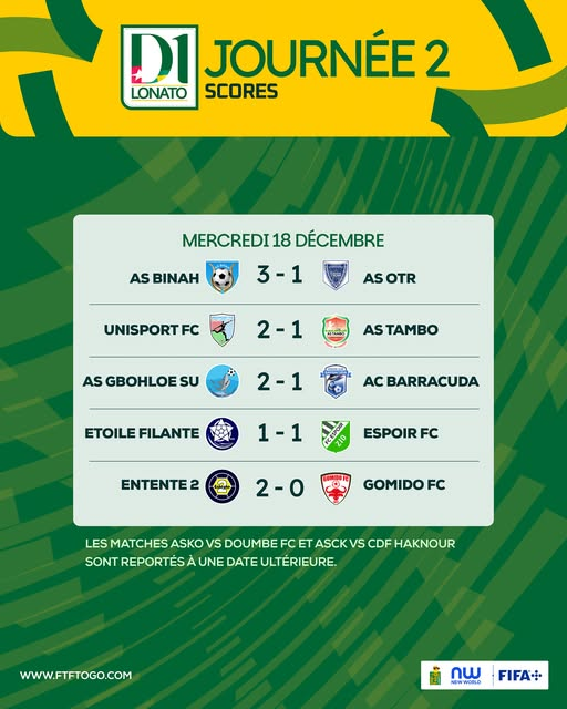 Les rencontres entre Asko et Doumbé FC, et Asck contre Cdf Haknour ont été reportées à une date ultérieure.