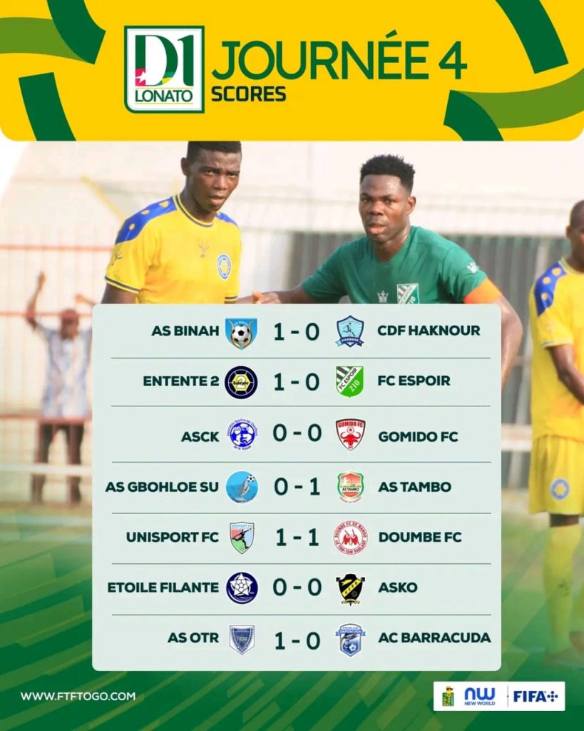 Également en avancé, le CDF Haknour a courbé l’échine, 0-1, face à l’AS Binah. Les jeunes académiciens du Rocher bleu ont été battus par les Cornes de la Binah. Le club de Bonfoh Arimiyao s’offre un succès capital dans la course pour les premières places ; il se classe 2e au terme du chapitre 4.