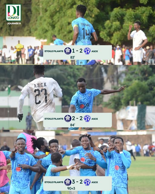 L’Etoile Filante de Lomé se relance devant l’ASCK de Kara. Les Shooting Stars ont été renversants face aux Chauffeurs de la Kozah. Menés par deux buts d’écart, les hommes de Séverin Kpakpokoumi ont scoré trois buts pour s’offrir le gain du match. Famah Djamiou a inscrit le but de la victoire à la 92e minute.