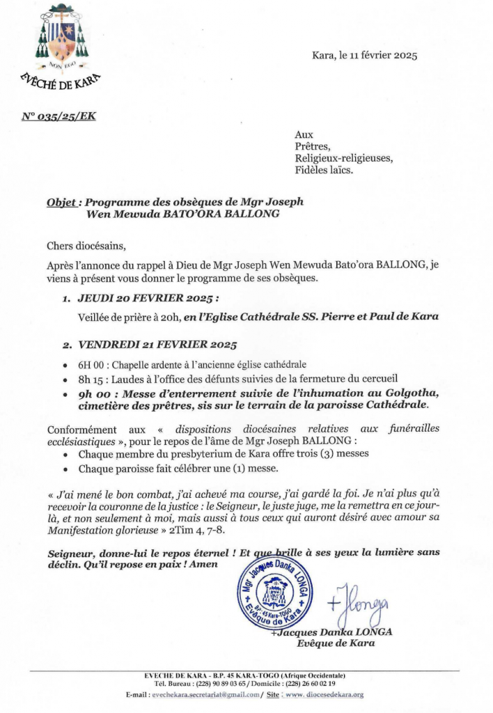 ANNONCES : Programme des obsèques de Mgr Joseph Bato’ora BALLONGAccueilPMFév12 par Jean Pierre BAWELA bawela1@gmail.com février 12, 2025 0 8 mois Nombre de vues: 216 ACTUALITE ANNONCE Navigation de l’article Article précédentArticle suivant Laisser un commentaire Annuler la réponseVotre adresse e-mail ne sera pas publiée. Les champs obligatoires sont indiqués avec *Commentaire * Nom * E-mail * Site web Enregistrer mon nom, mon e-mail et mon site dans le navigateur pour mon prochain commentaire.