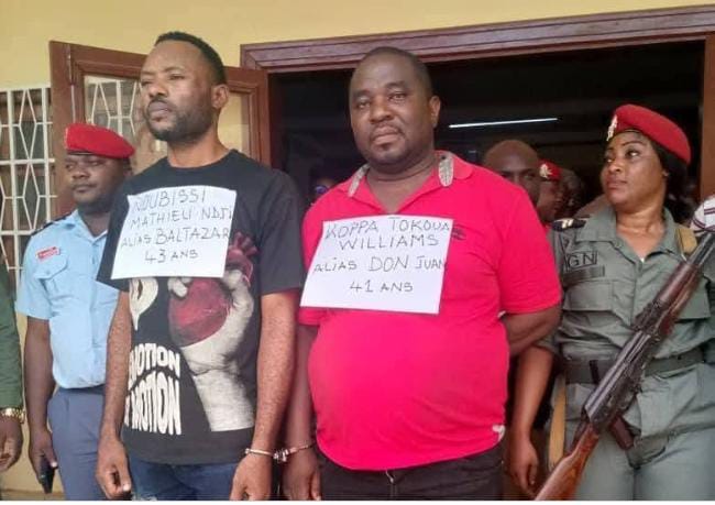 Sous la direction du Général de brigade Elias Tongue, les forces de gendarmerie ont réussi à appréhender deux individus particulièrement recherchés. Mes suspects, Noubissi Mathieu Ndji, alias Baltazar, 43 ans, et Koppa Toukoua Williams, alias Don Juan, 41 ans, ont été interpellés au terme d’une opération méticuleusement planifiée.