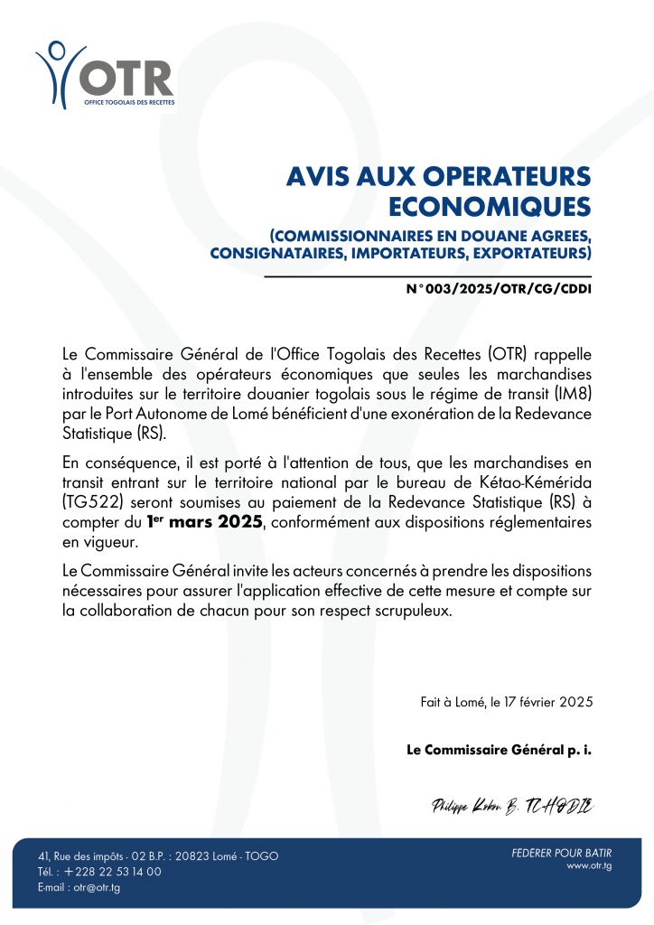 – et du projet de loi modifiant et complétant la loi n° 2012-016 du 14 décembre 2012 portant création de l’Office Togolais des Recettes (OTR).