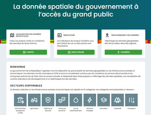 Si le premier (geoportail.gouv.tg) offre un accès sécurité pour les institutions publiques, le second (geodata.gouv.tg) est une interface ouverte au public, et est accessible aux partenaires, chercheurs, acteurs économiques et société civile.