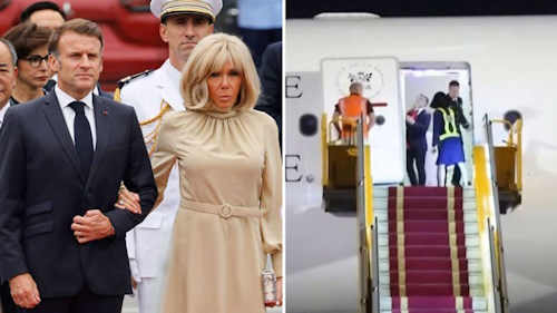 Quelques instants plus tard, il est révélé que c’est la première dame, Brigitte Macron, vêtue d’un veston rouge, qui est à l’origine de cet incident insolite capté par les médias. Le couple présidentiel descend ensuite les marches de l’avion, visiblement empreint d’un certain malaise.