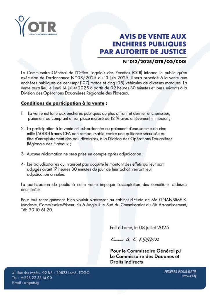 Pour vos annonces, (publi)reportages, etc., joignez-nous au (00228)91515309/79872224