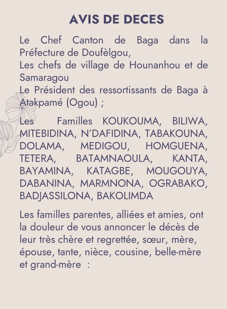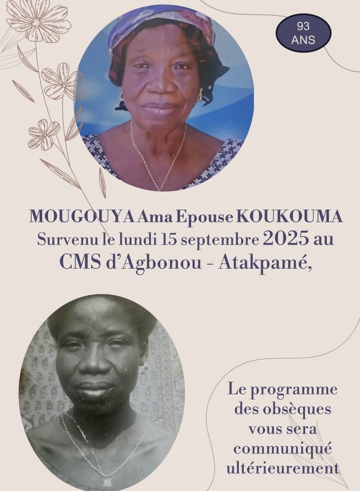 ANNONCE DE DECES : Les familles MOUGOUMA et KOUKOUMA pleurent Maman Ama (93ans)AccueilPMSep16 par Jean Pierre BAWELA bawela1@gmail.com septembre 16, 2025 0 1 mois Nombre de vues: 132 ACTUALITE NECROLOGIE Navigation de l’article Article précédentArticle suivant Laisser un commentaire Annuler la réponseVotre adresse e-mail ne sera pas publiée. Les champs obligatoires sont indiqués avec *Commentaire * Nom * E-mail * Site web Enregistrer mon nom, mon e-mail et mon site dans le navigateur pour mon prochain commentaire.