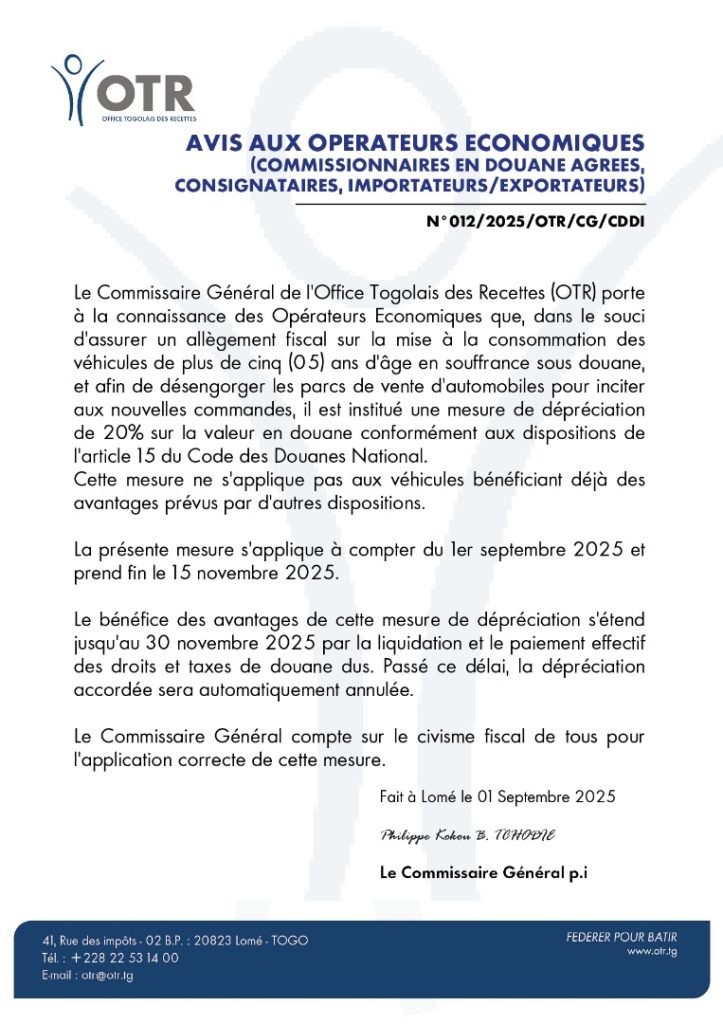 Notons qu’à l’ouverture des travaux de cette mission, le Commissaire général de l’OTR, Dr Philippe Kokou Tchodié, à saisi l’occasion pour réitérer l’engagement de ses équipes à collaborer pleinement avec la mission et à garantir la qualité de cette seconde évaluation. Puisque, a-t-il rappelé, « les conclusions attendues permettront de consolider les réformes en cours et de mieux servir les contribuables ».