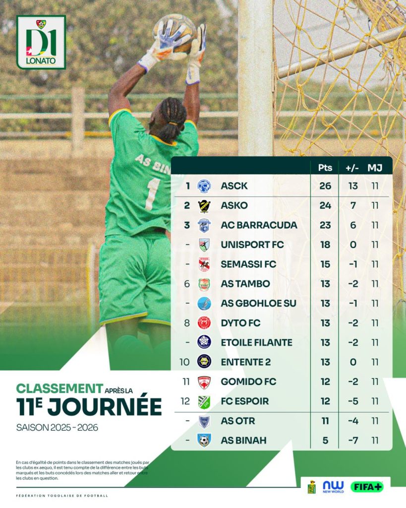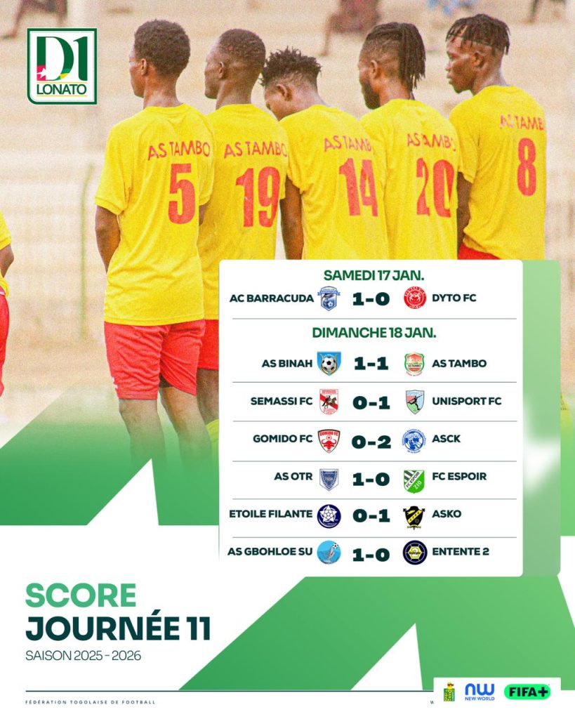 Le onzième chapitre du championnat togolais a été disputé le  week-endécoulé. Cette journée a souri aux Requins mâles d’Aného face à Entente II de Lomé. Sémassi perd le derby Têm au détriment de Unisport. À noter également la deuxième victoire de la saison pour l’AS OTR sur Espoir FC de Zio. Les autres cadors du championnat ont assuré leur statut.