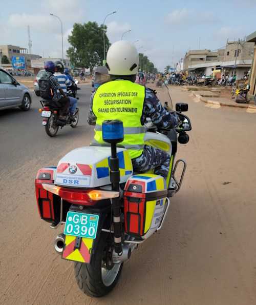 Désormais, vous verrez sur les principaux axes routiers, avec une attention portée sur le grand contournement de Lomé, la nationale N°1 (RN Lomé-Cinkassé), la route Lomé-Aného (RN2), la route Lomé-Atakpamé (RN5) des agents de la Direction de la sécurité routière (DSR) (à dos de motos).