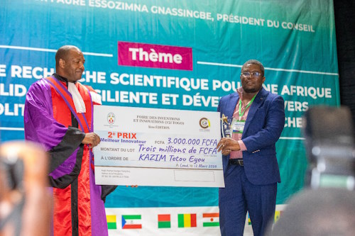 L’opinion nationale et internationale a observé, en directe depuis le Palais des congrès à Lomé, la remise officielle, le soir du jeudi 12 mars dernier, l’apothéose des journées scientifiques et technologiques, édition 2026. Le trophée de 2ème meilleurs inventeurs et innovateurs a été décerné, à cette occasion, à notre bien aimé Kazim Tètou-Eyou Jean Luc.
